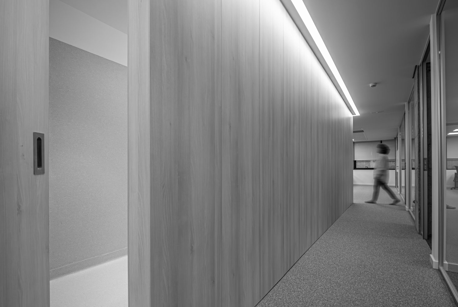Puertas de mamparas batientes en vidrio y bastidor de aluminio.